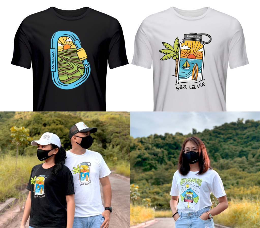 These are the shirt and cap designs I’ve done for our brand with the theme, “Outdoor Life”.