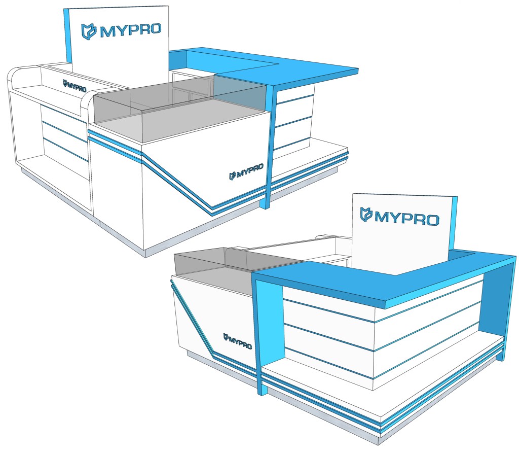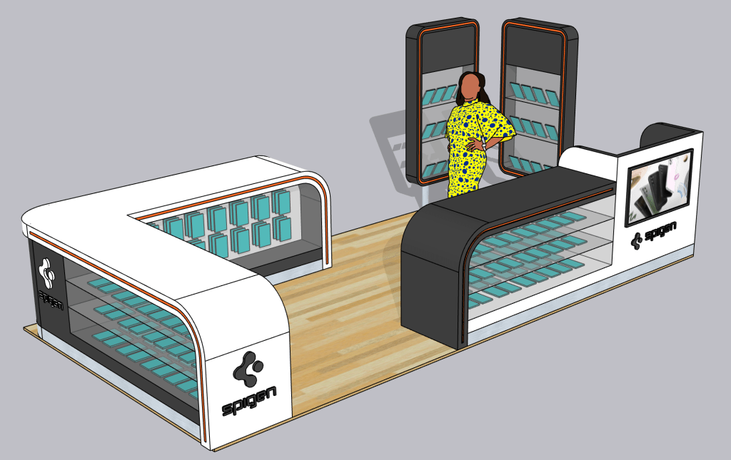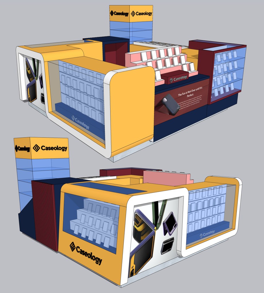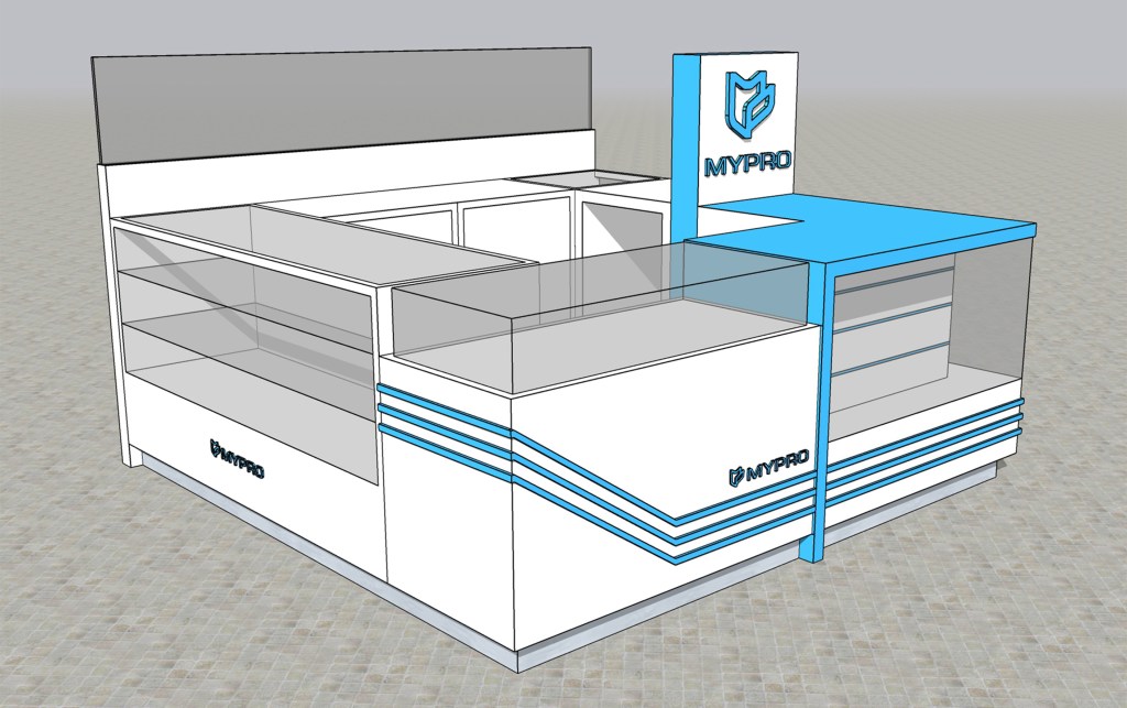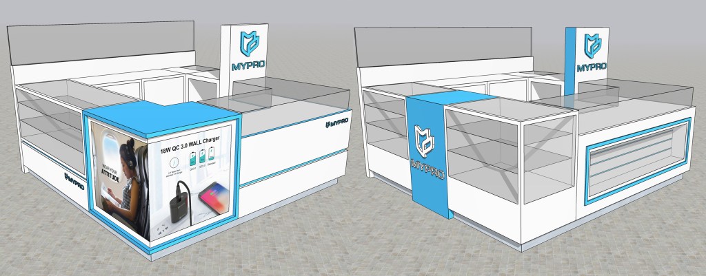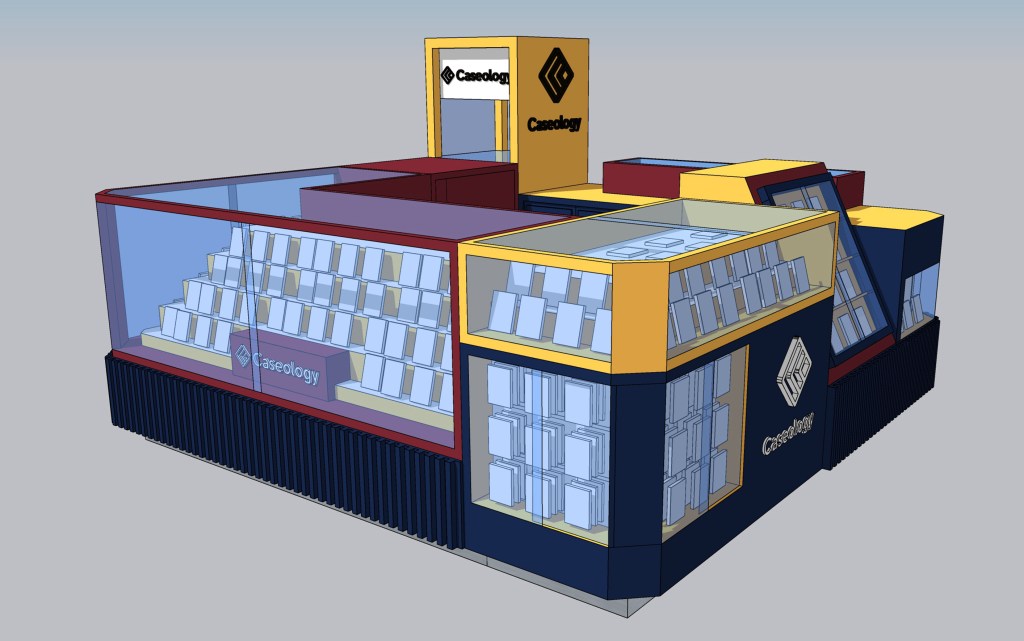 These are some of my store and kiosk designs for different clients. I used Sketchup to make these 3D kiosk designs.