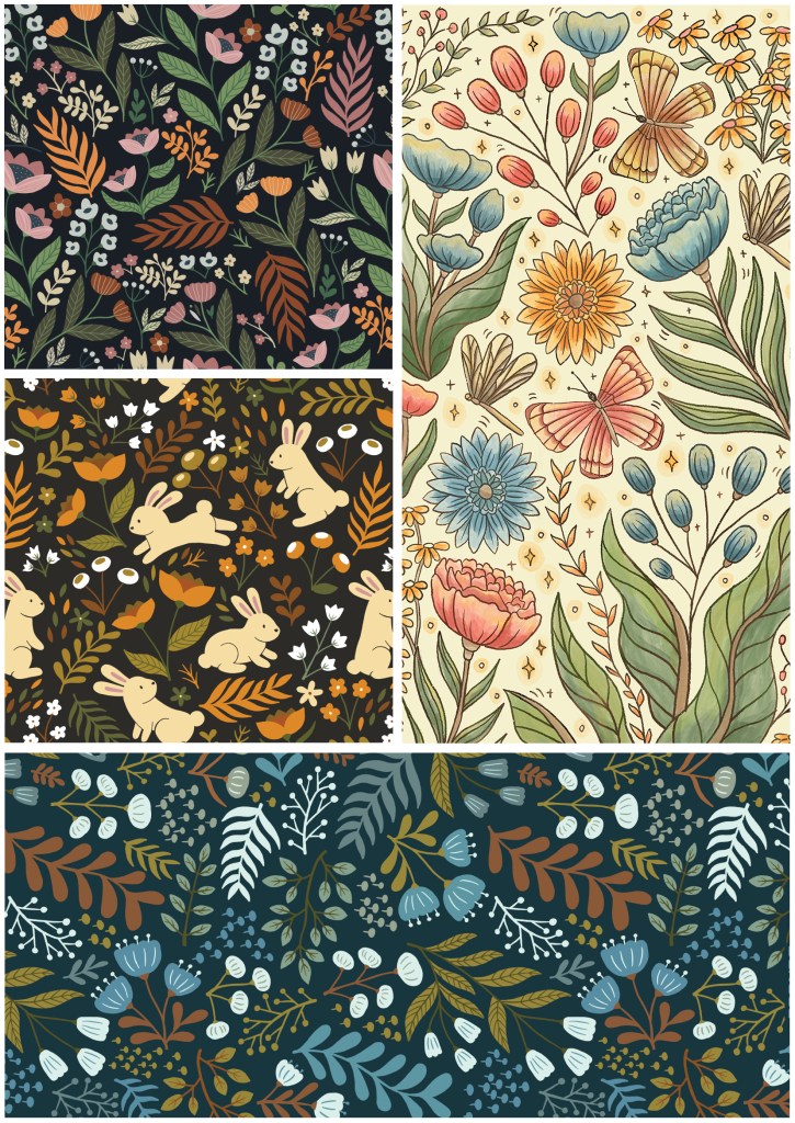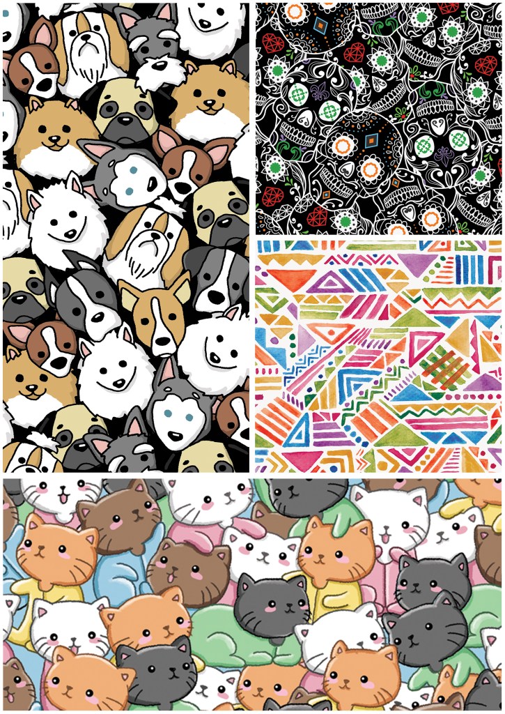 Here are some pattern designs that I illustrated and designed which were printed on fabric, towels, headwear and other accessories.